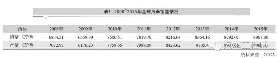 2015年,在全球經(jīng)濟(jì)不景氣、經(jīng)濟(jì)增長放緩的背景下,世界汽車產(chǎn)銷總量依然增加。根據(jù)世界汽車組織 (OICA) 的統(tǒng)計,全年全球累計生產(chǎn)各類汽車 9068.31 萬輛,同比增長 1 個百分點(diǎn)。