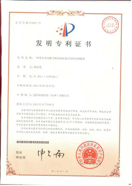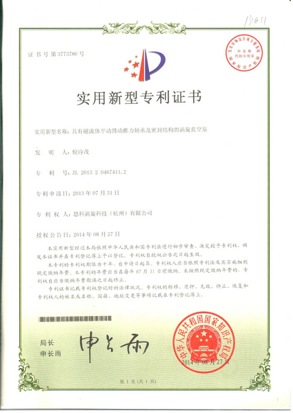 實用新型具有磁流體平動滑動推力軸承及密封結構的渦旋真空泵 >